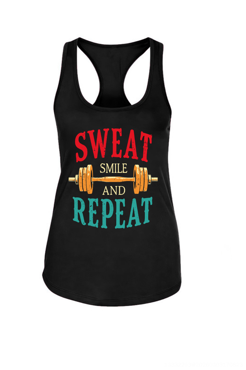 Sweat Smile and Repeat Printed Racerback Tank Tops