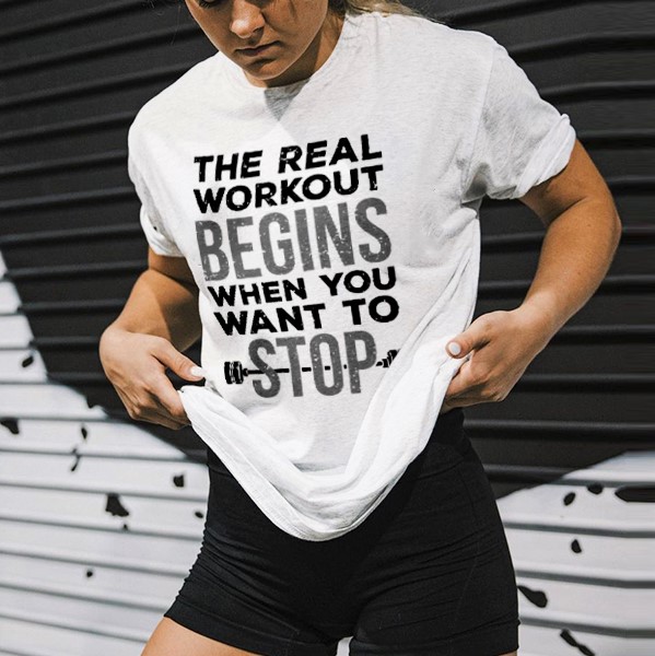 The Real Workout Begins When You Want To Stop Printed Women's T-shirt