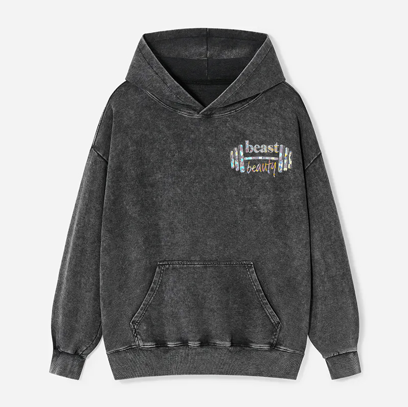 Train Like A Beast Look Like A Beauty Printed Unisex Washed Hoodie
