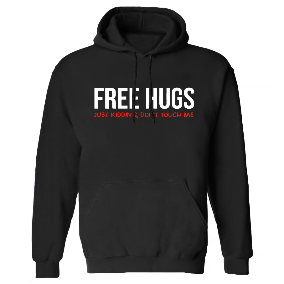 Free Hugs Just Kidding Don't Touch Me Printed Women's Heavyweight Hoodie with Drawstring