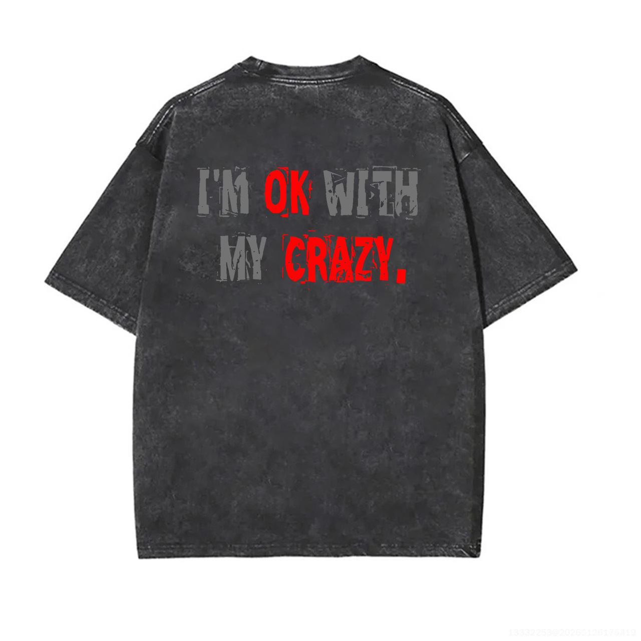 I'm OK With My Crazy Printed Unisex Washed T-Shirt
