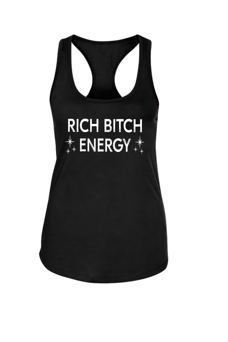 Rich Bitch Energy Printed Racerback Tank Tops