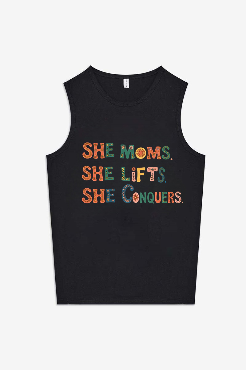 She Moms She Lifts She Conquers Printed Women's Vest