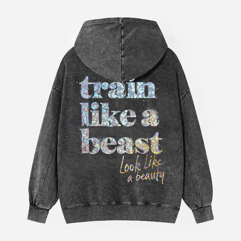 Train Like A Beast Look Like A Beauty Printed Unisex Washed Hoodie